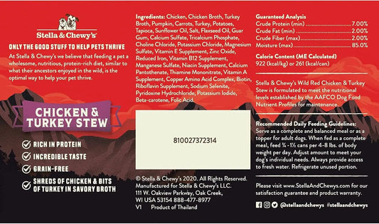 Stella & chewy's - Wild Red Wet Dog Food Chicken & Turkey Stew High Protein Recipe, 10 Ounce (Pack of 6)