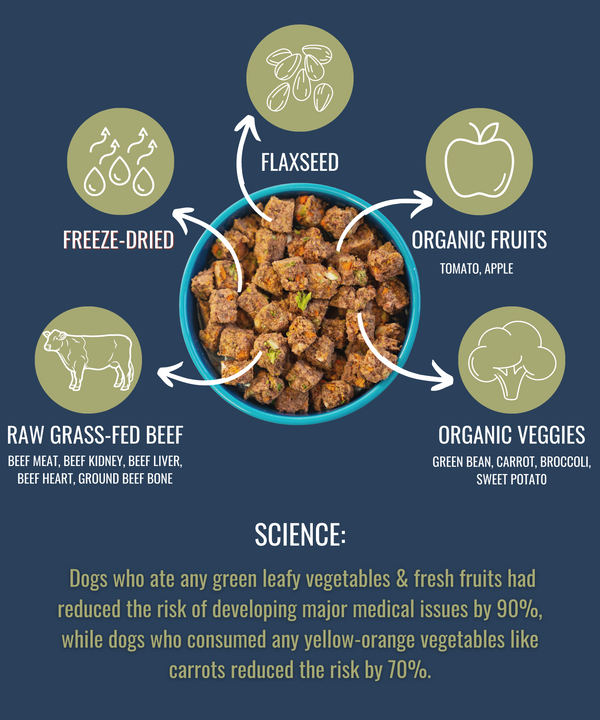 Alpha Pak uses only raw ingredients with no artificial flavoring or preservatives of any kind. Every batch is gently freeze dried to lock in raw nutrition while making the food shelf stable and easy to store. Whether served as a full meal or a daily topper, this recipe supports digestion, energy, and immunity without grains, fillers, or synthetic additives.