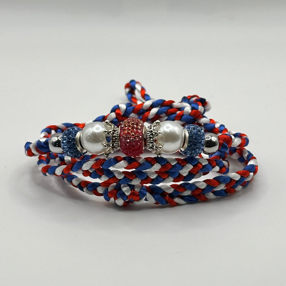 ✔️ Blue diamond and pearl bead accents for a refined sparkle