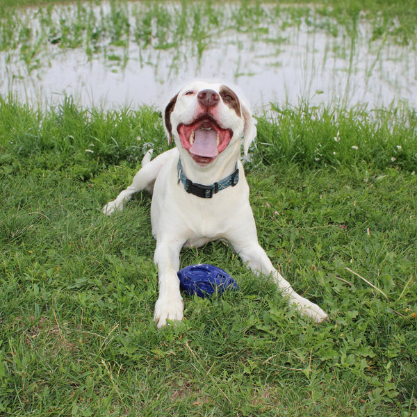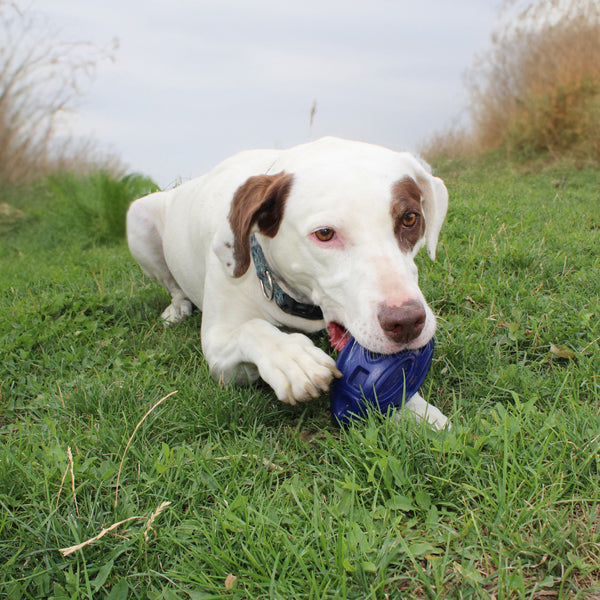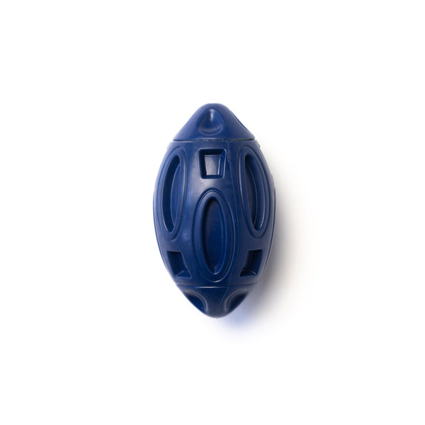 Inside is a reinforced squeaker that is harder to chew through, giving your pup long lasting sound and satisfaction. The special rubber material is designed to reduce odor, making it more pleasant for both you and your dog. Its fun football shape and bright colors make it easy to toss, carry, and spot in the grass or around the yard.
