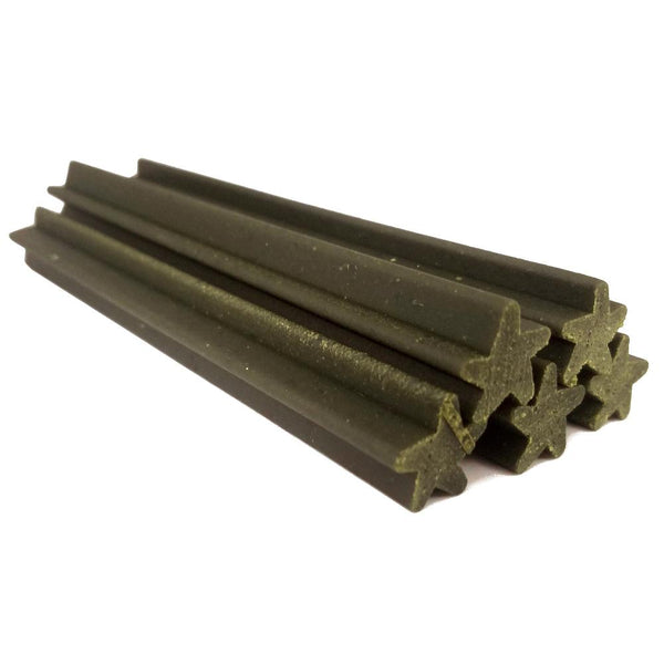 These grain free dental support chew sticks are just part of our line of functional dog treats. The unique star shape of these treats is designed to help work the chew into the small spaces between dog's teeth to help increase blood flow to the gums and prevent tartar buildup.