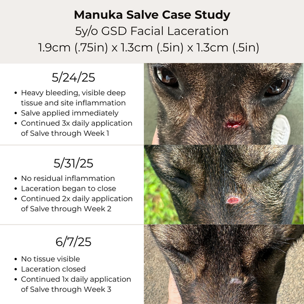 Interested in learning more? Read our blog post on Manuka Honey for Dogs and Horses and this peer-reviewed study on the uses of Manuka Honey in veterinary medicine.