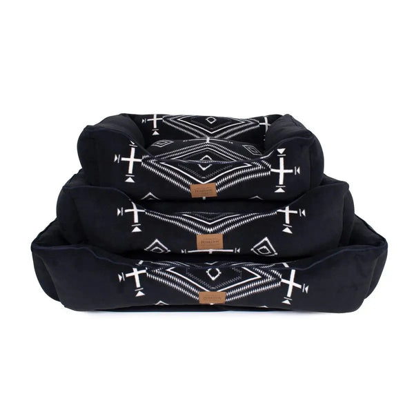 Elevate your furry friend's sleeping experience with a premium pet bed designed for ultimate relaxation and relief. Featuring iconic Pendleton patterns inspired by traditional motifs such as Spanish crosses, diamond-shaped “eyes” (ojos), and the Navajo Four Mountains of Creation, this luxurious bed adds a stylish and timeless touch to any space.