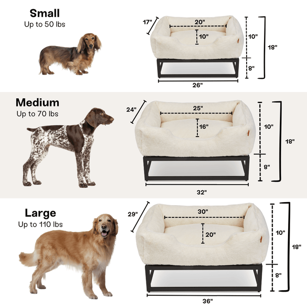 The FÜZI Dog Bed redefines pet luxury with a modern, elevated design. Built with a plush faux-fur bolster top and a sturdy metal platform base, this raised dog bed offers orthopedic support, cooling airflow, and timeless design.