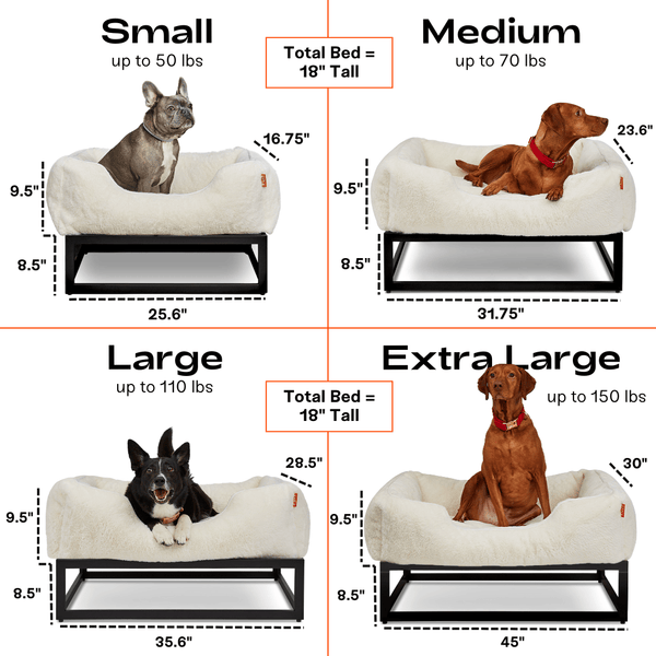 This raised dog bed features the same supportive bolster top and chew-resistant metal platform base that dog owners love—now in a brushed woven fabric with a soft hand-feel that’s durable and easy to clean. The 8-inch platform elevates your dog, improving airflow and creating the perfect window seat for pups of all sizes.