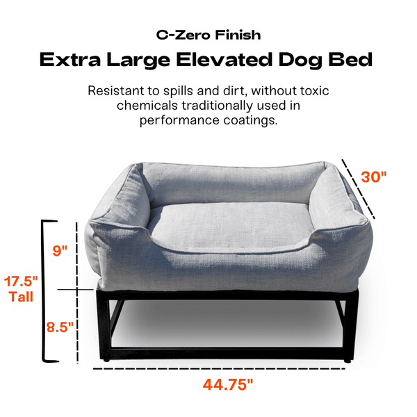 This raised dog bed features the same supportive bolster top and chew-resistant metal platform base that dog owners love—now in a brushed woven fabric with a soft hand-feel that’s durable and easy to clean. The 8-inch platform elevates your dog, improving airflow and creating the perfect window seat for pups of all sizes.
